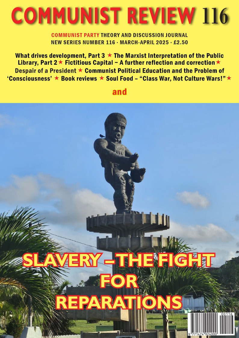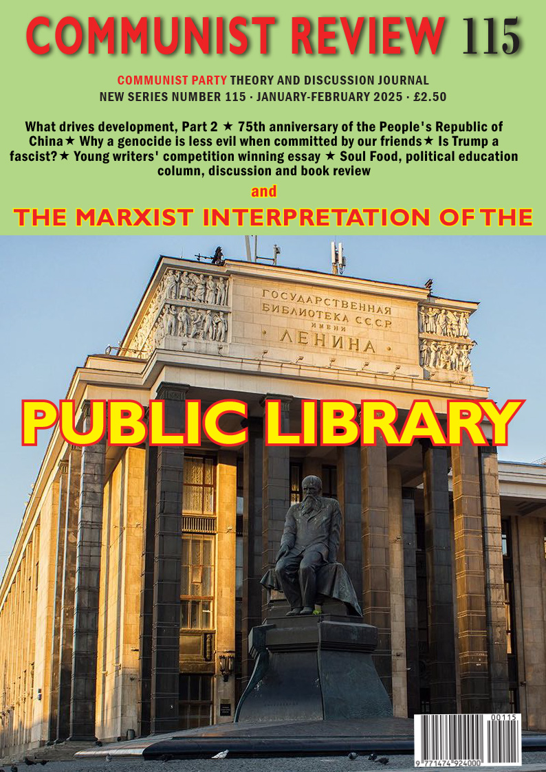 CR intends from now on to engage more consistently in the battle of ideas and emotions, in particular with the issues of neoliberalism, imperialism and diversionary trends such as post-Marxism, and with the degradation of social life through the ruling class’s use of the culture industries and the education system. We aim to reflect major Communist Party of Britain priorities and initiatives, and to seek out and publish articles on various Marxist approaches internationally, looking in particular at China, Africa, India, the Caribbean and so on.