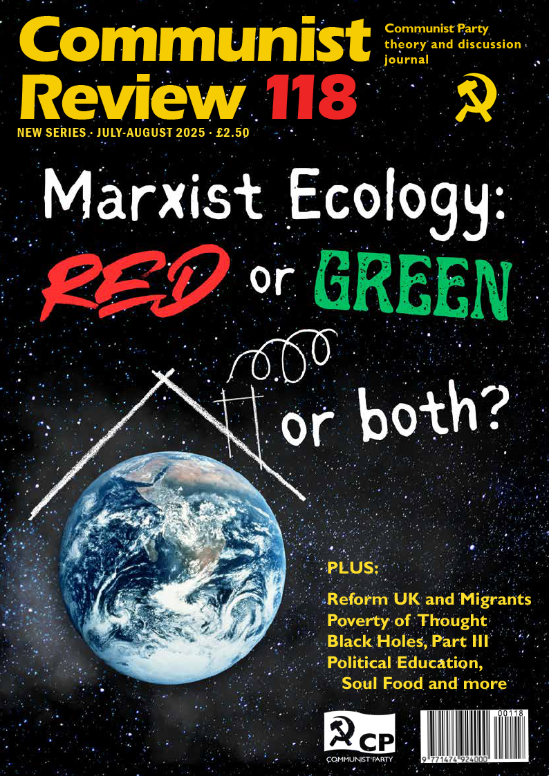 Today the ideological situation demands that we step up a gear, not only with frequency of publication, but also with impact and outreach. From July 2024 (CR112), the journal has been published bimonthly, and this web site is intended to extend its outreach. Here you will find contents, editorials and the text of one major article from the most recent four issues, and full pdfs of all previous editions for which we have digital versions. You will also find links to the Communist Party online shop, where you can buy individual issues and subscribe.